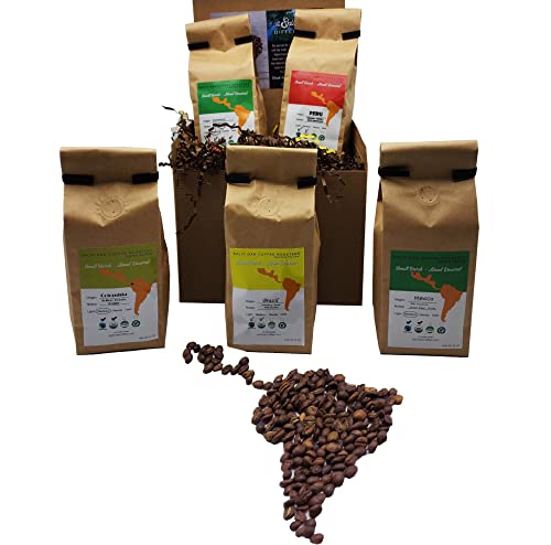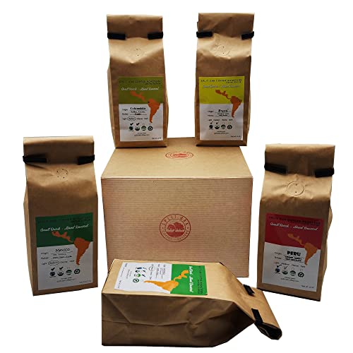 Coffee Gift Set Las Americas 5 Pack 12oz Gourmet Organic Medium Roast whole Bean with Best Beans From Mexico, Guatemala, Peru, Colombia and Brazil 60oz