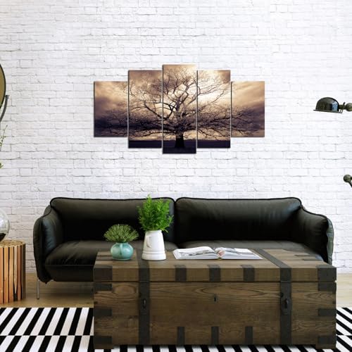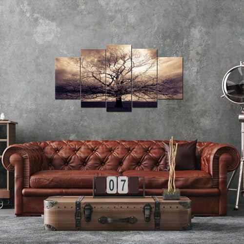 sechars – 5 Piece Large Canvas Wall Art Sepia Tree of Life Picture Photo Art Print on Canvas Mysterious Fantasy Forest Artwork for Home Office Living Room Decor Gallery Wrap Ready to Hang